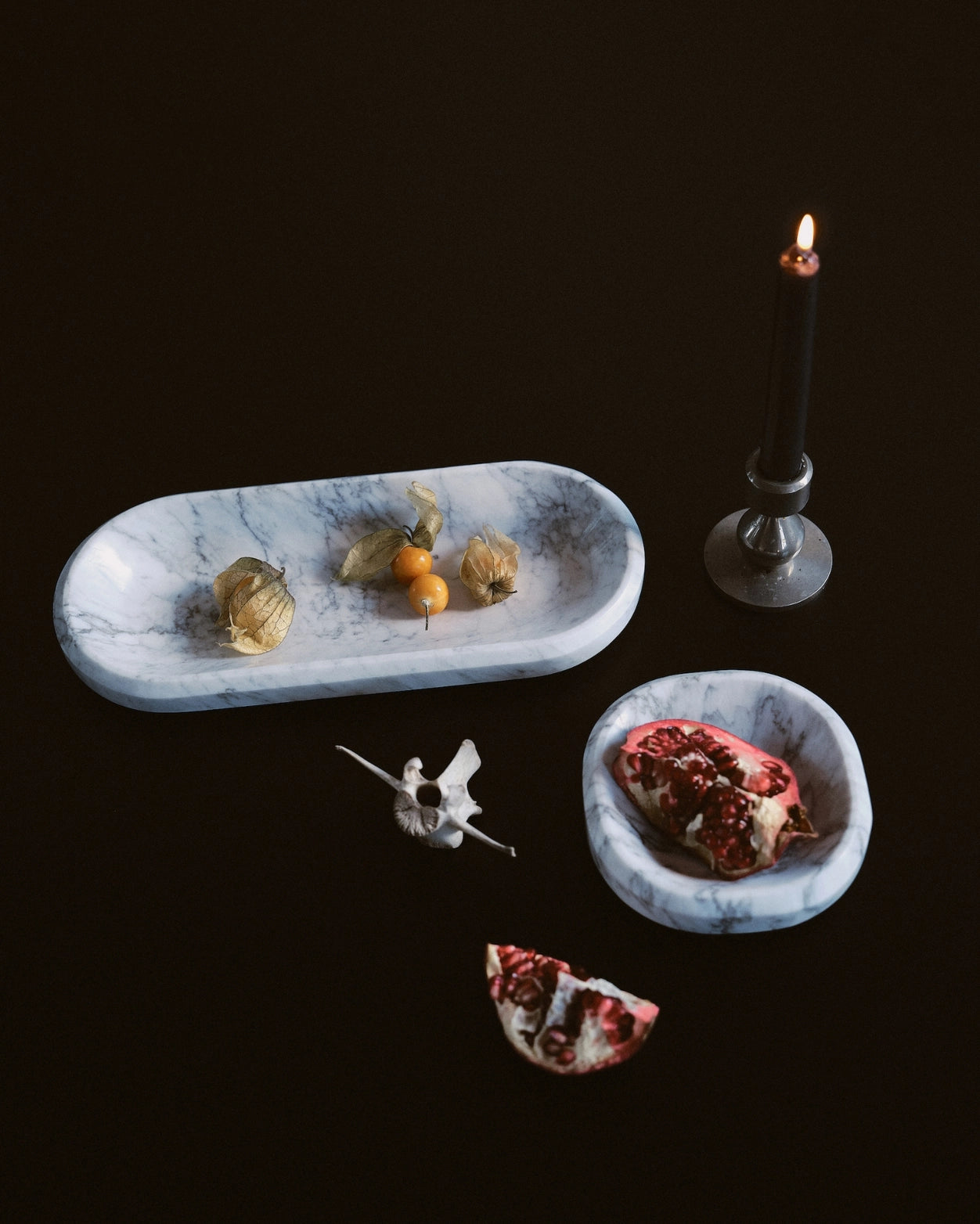The elegantly simple Facet Bowl functions as a centerpiece display, an elegant fruit bowl, or a tray for styling your coffee table. With a beveled edge at the bottom, the bowl has a softly floating appearance.
