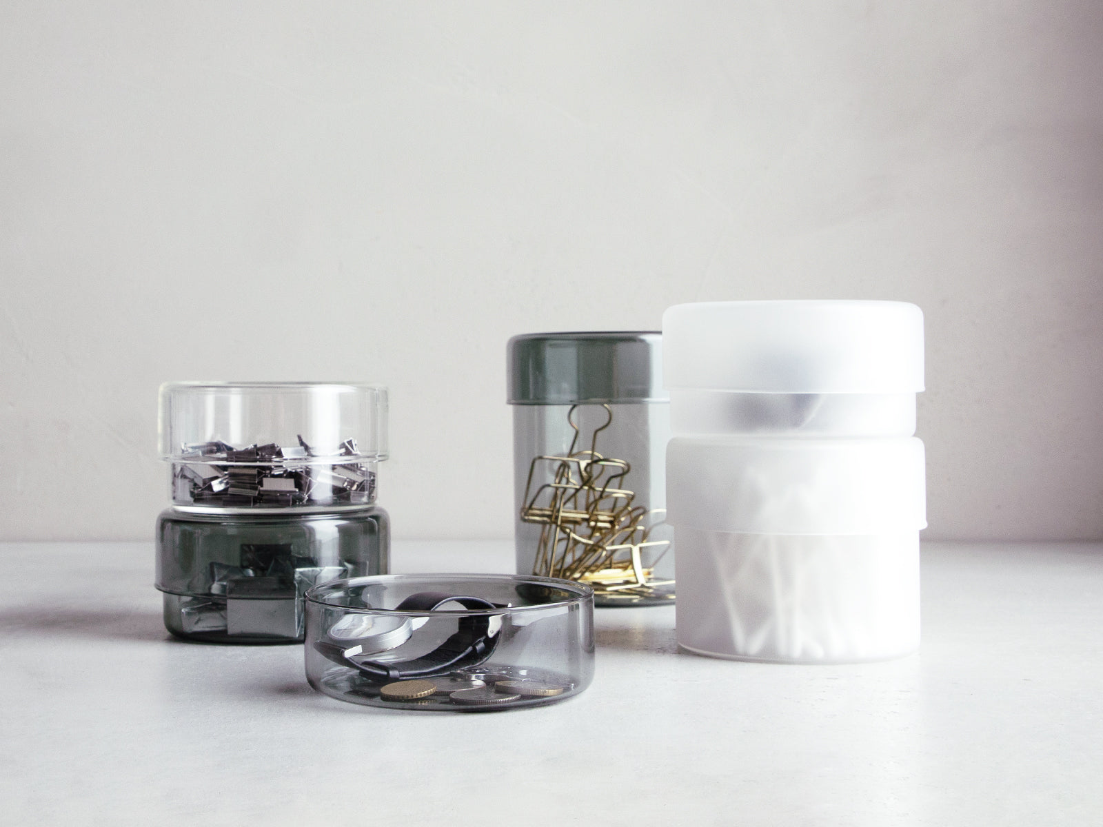 Useful in many different parts of your home, Schale storage canisters can be used in the kitchen, bathroom, desktop and living room to store and organize. With uniform diameter, each Schale canister also be stacked to save space.