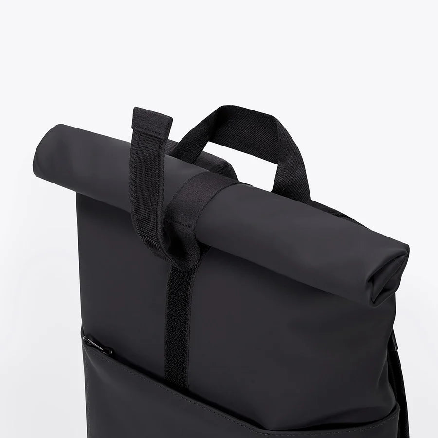 A minimalist backpack that is suitable for many occasions - whether on the road by bike, to school or work, or a day of shopping - and all types of weather. The roll-top closes with a hook and loop fastener that allows for easy filling. The interior is lined with a soft fleece that protects your belongings from scratches.