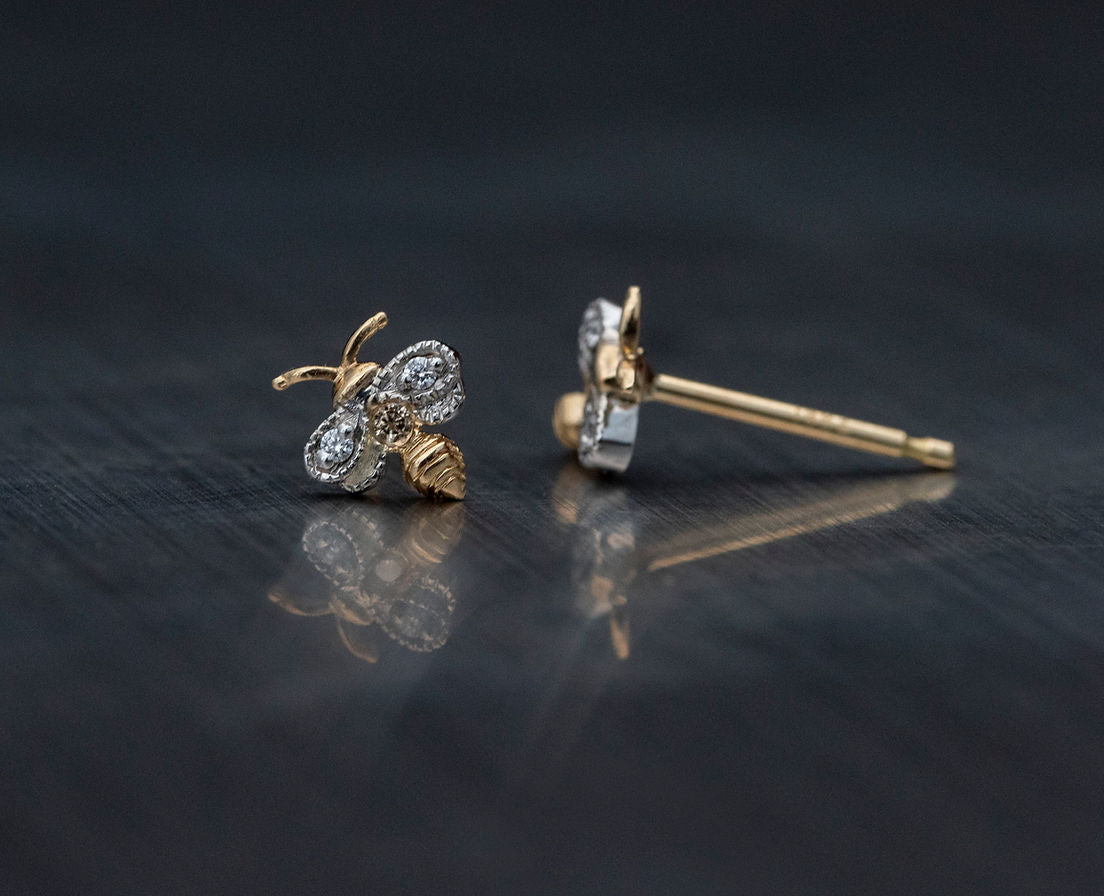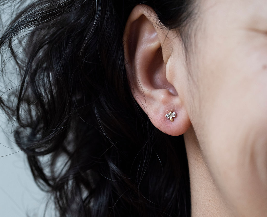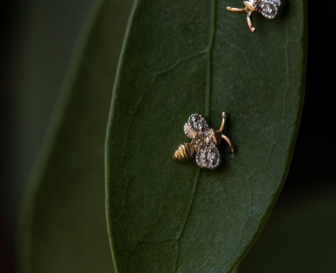 Inspired by the minute perfection of North America’s smallest bee species and namesake, Perdita Minima studs are finely detailed in 18K gold with natural diamonds.