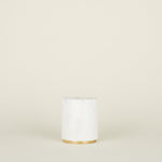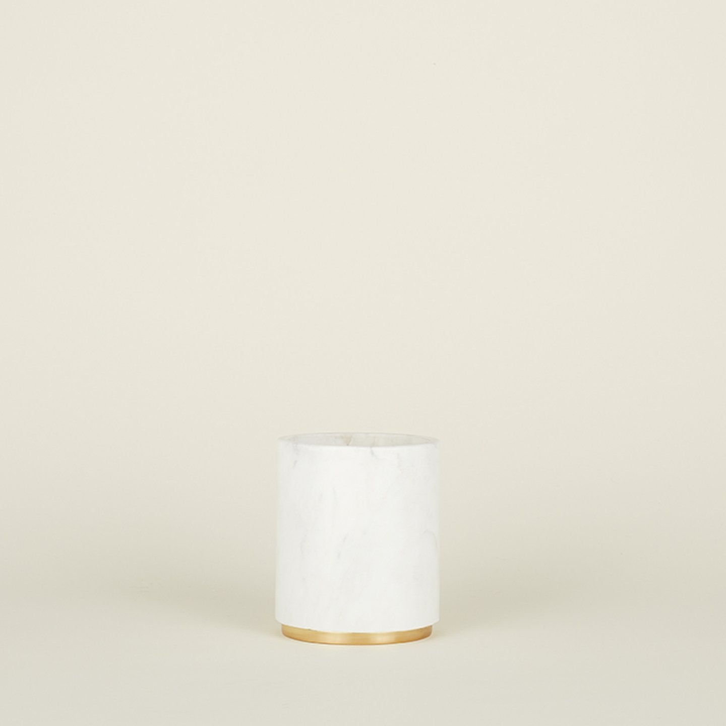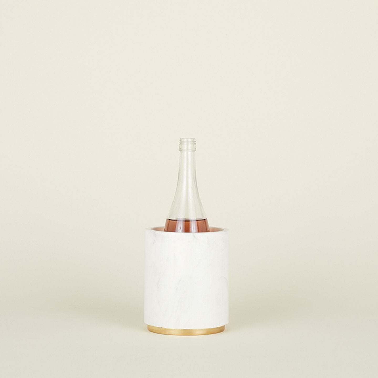 Hollowed block of white marble, finished with a brass bottom for a bit of shine. You pick: can be used as utensil holder or wine chiller or cachepot. An enduring classic that looks at home in any space.