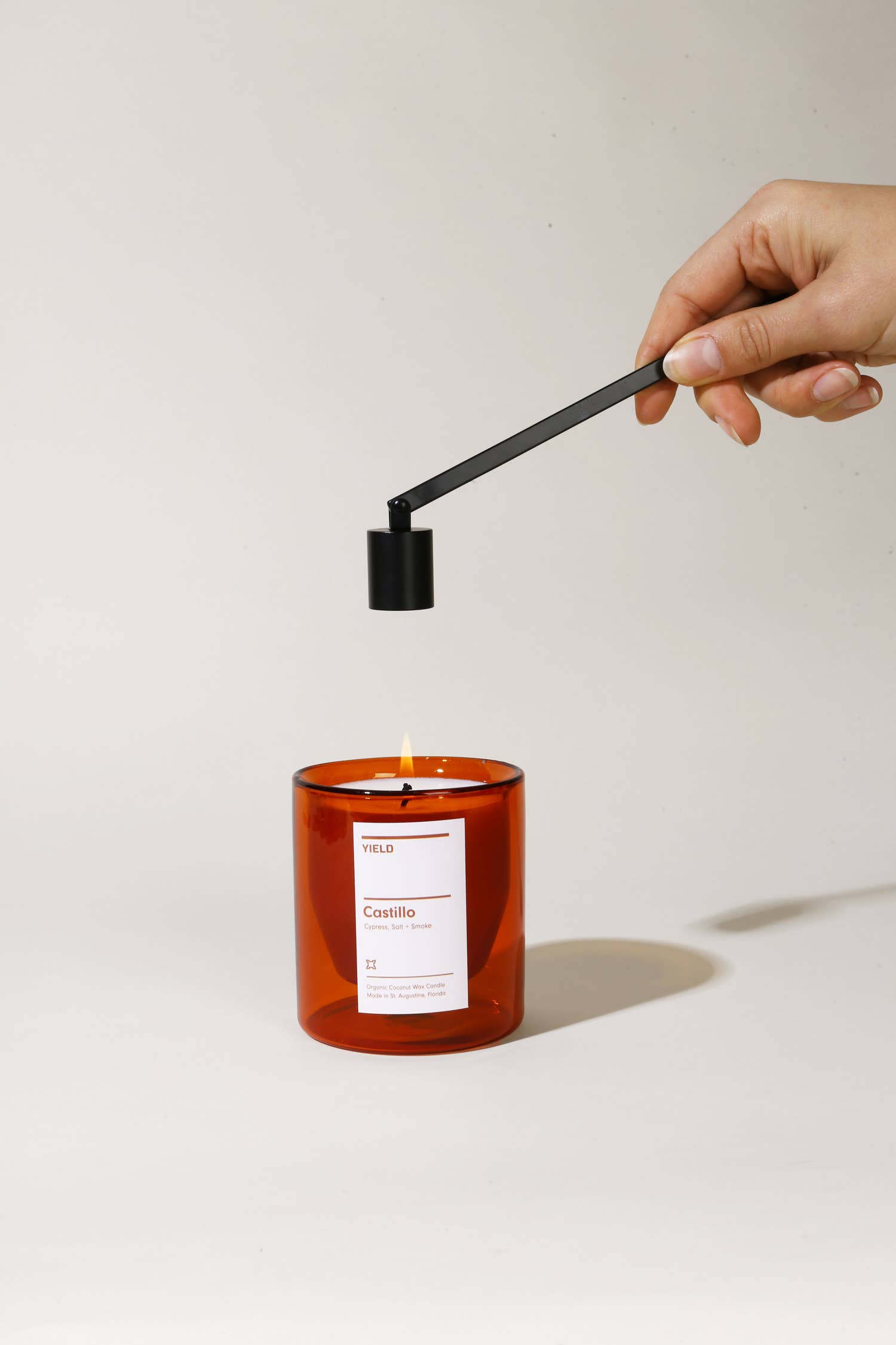 Safely extinguish a flame and optimize candle longevity with this stainless steel candle snuffer.