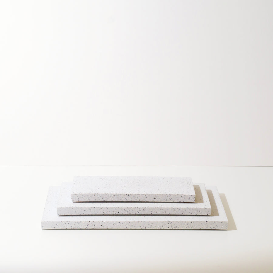 Simple flat "tray" in a rectangle shape, for organizing your shelf/table/counter - whether it be candles, incense, or a home for bottle and jars in your kitchen or bathroom.  Handmade from granite based Jesmonite, and available in three sizes. Mix and match to create your own display system.