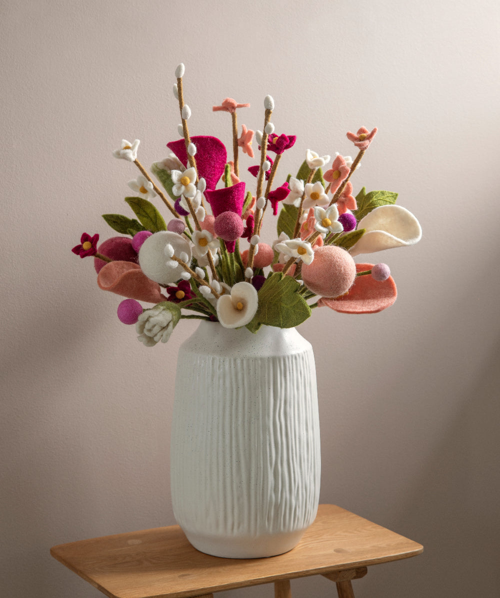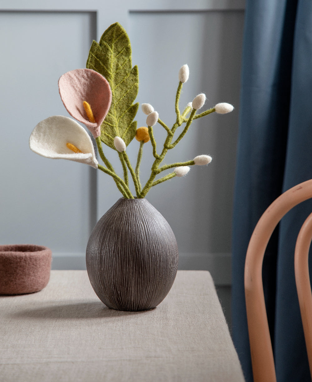 Gry & Sif felt felt "flowers" are designed in Denmark and handmade by skilled women in Nepal from 100% New Zealand wool. Their felt greenery are a great addition or alternative to dried flower arrangements and are a great way to add some cozy, sustainable decor to your home, especially during the holidays.