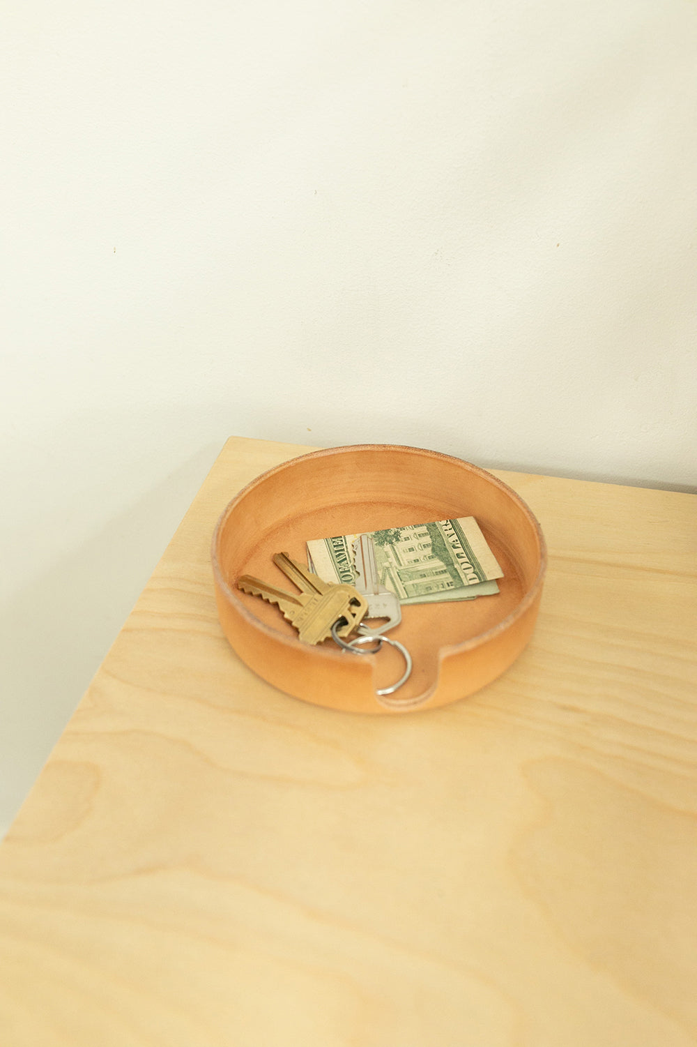 Kobon Natural Leather Coaster / Catchall Tray, Round