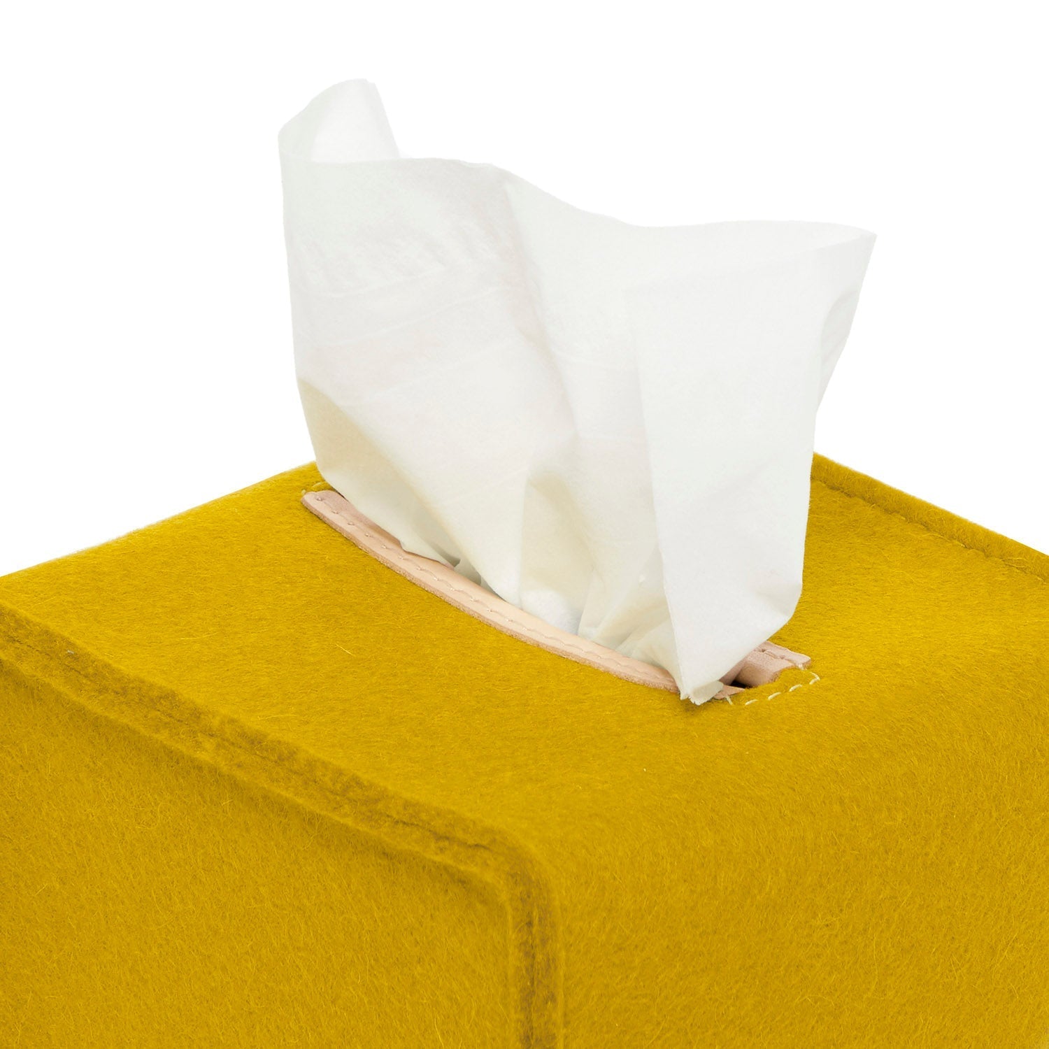 Small Merino Wool Felt Tissue Box Cover, Dijon