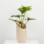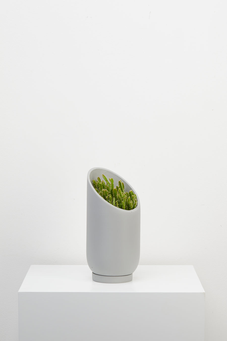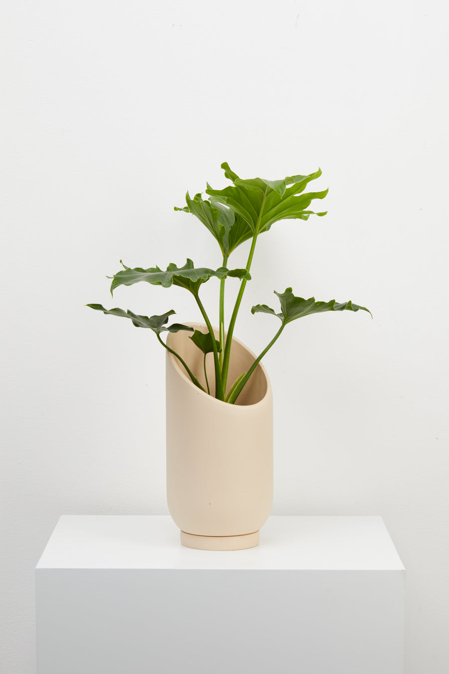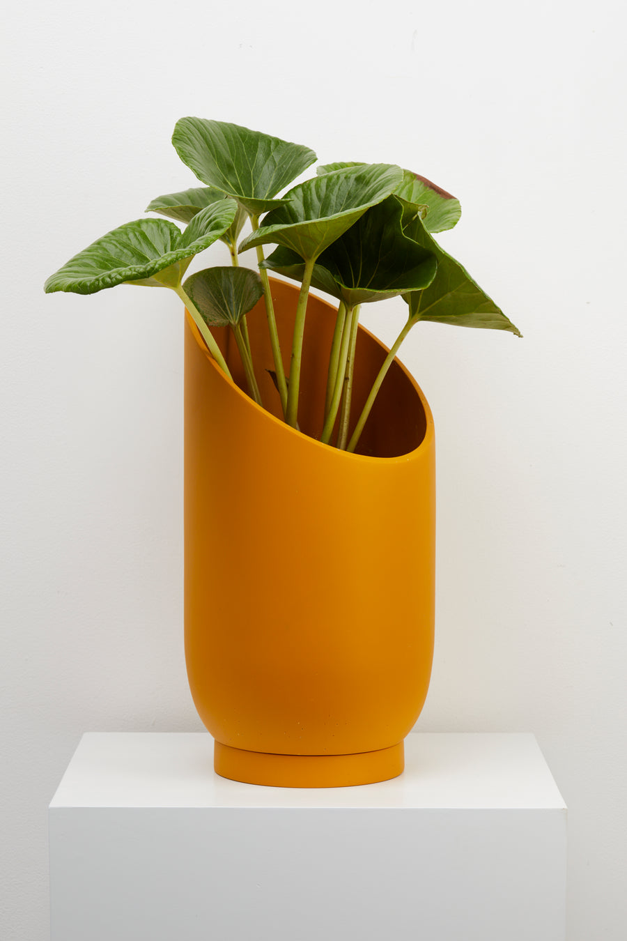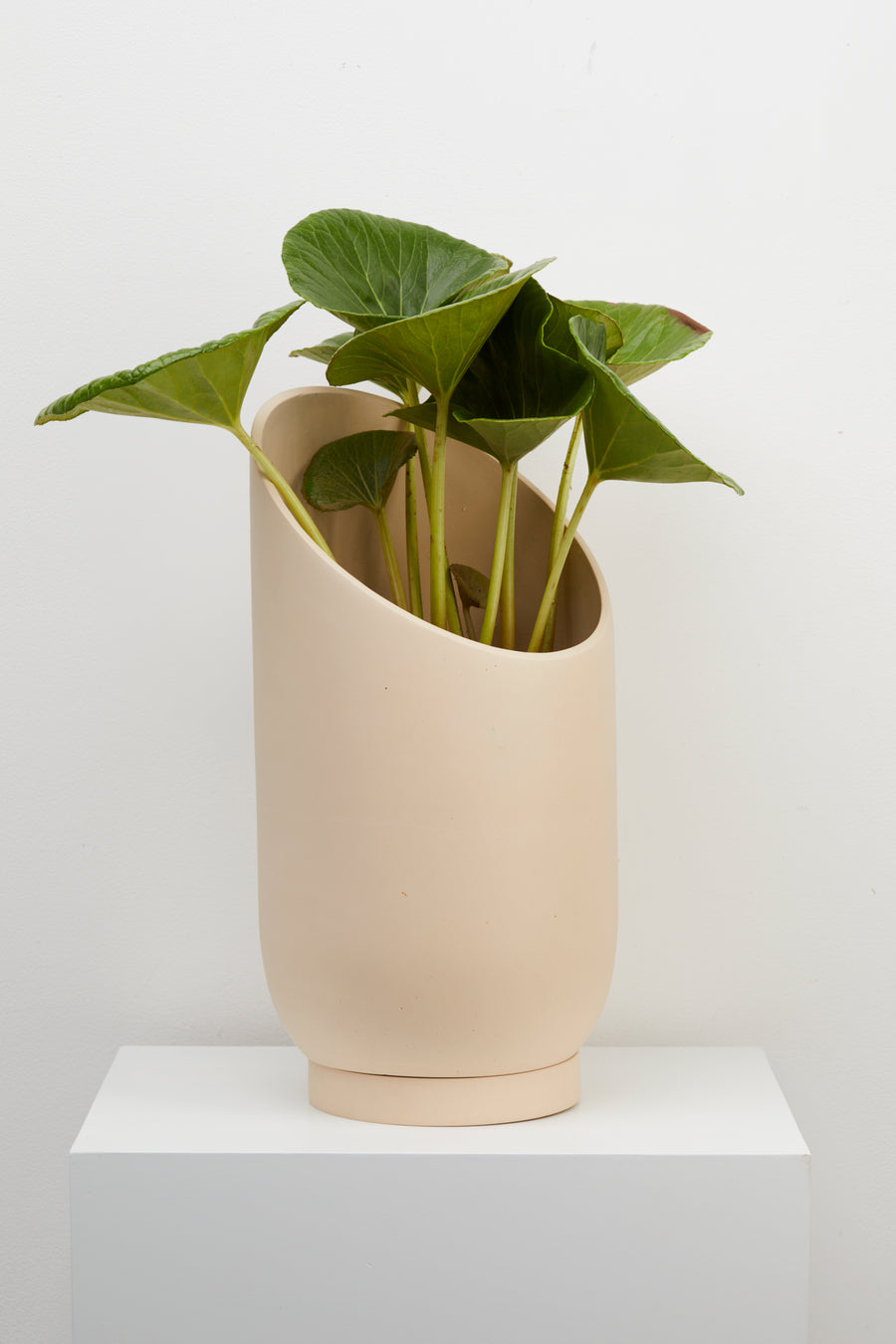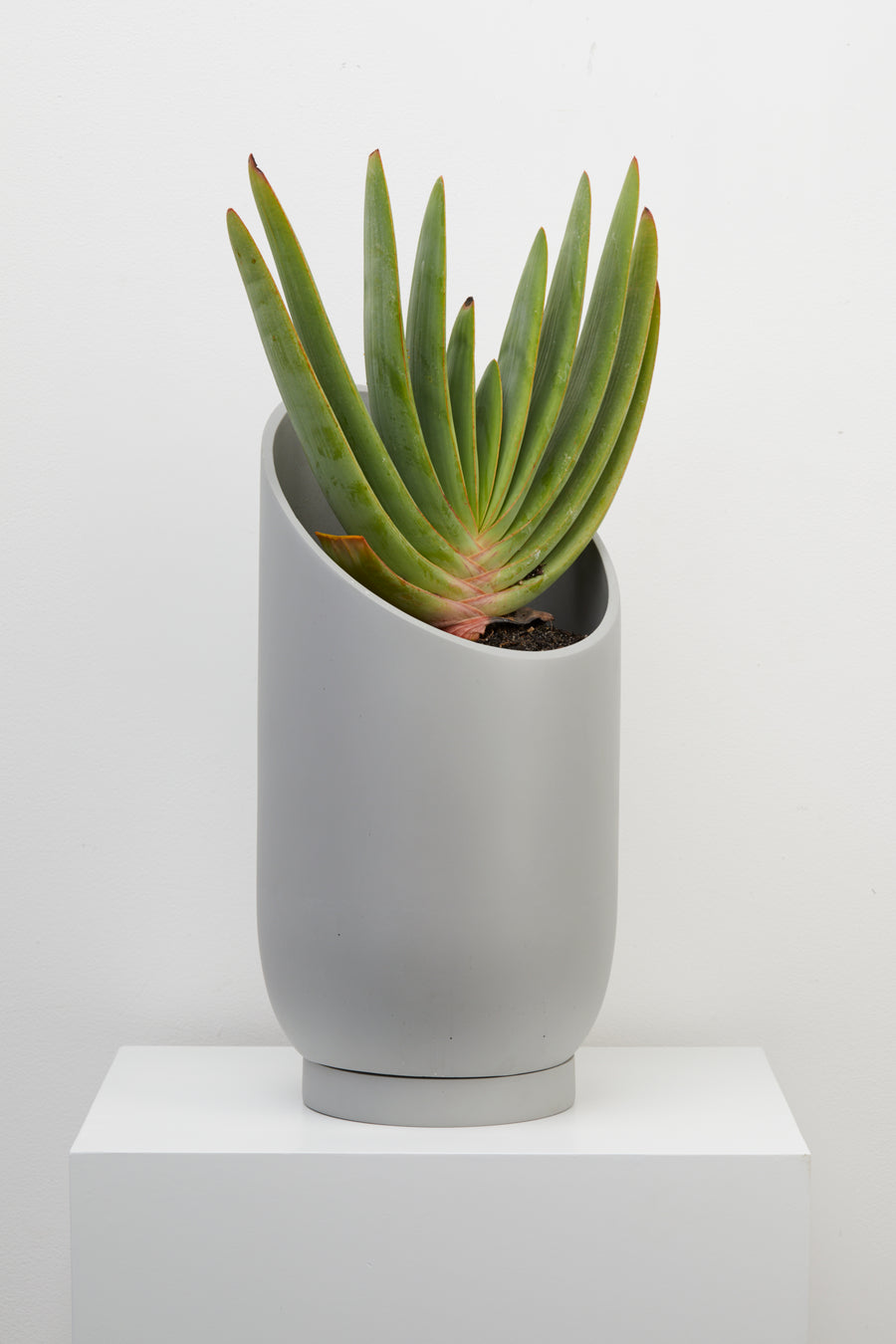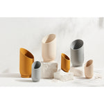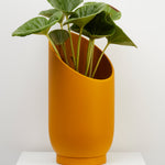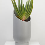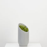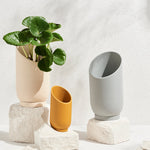 The dynamic, sliced shape of the Large Summit Planter provides a dramatic backdrop for larger plants and highlights the shape of the plant's foliage. The smaller Summit Planter is a smaller stage that envelopes plants in a quiet embrace. A turn of the planter in any direction provides a different shape for showcasing your plants. Display alone or paired in two sizes for an interesting grouping.