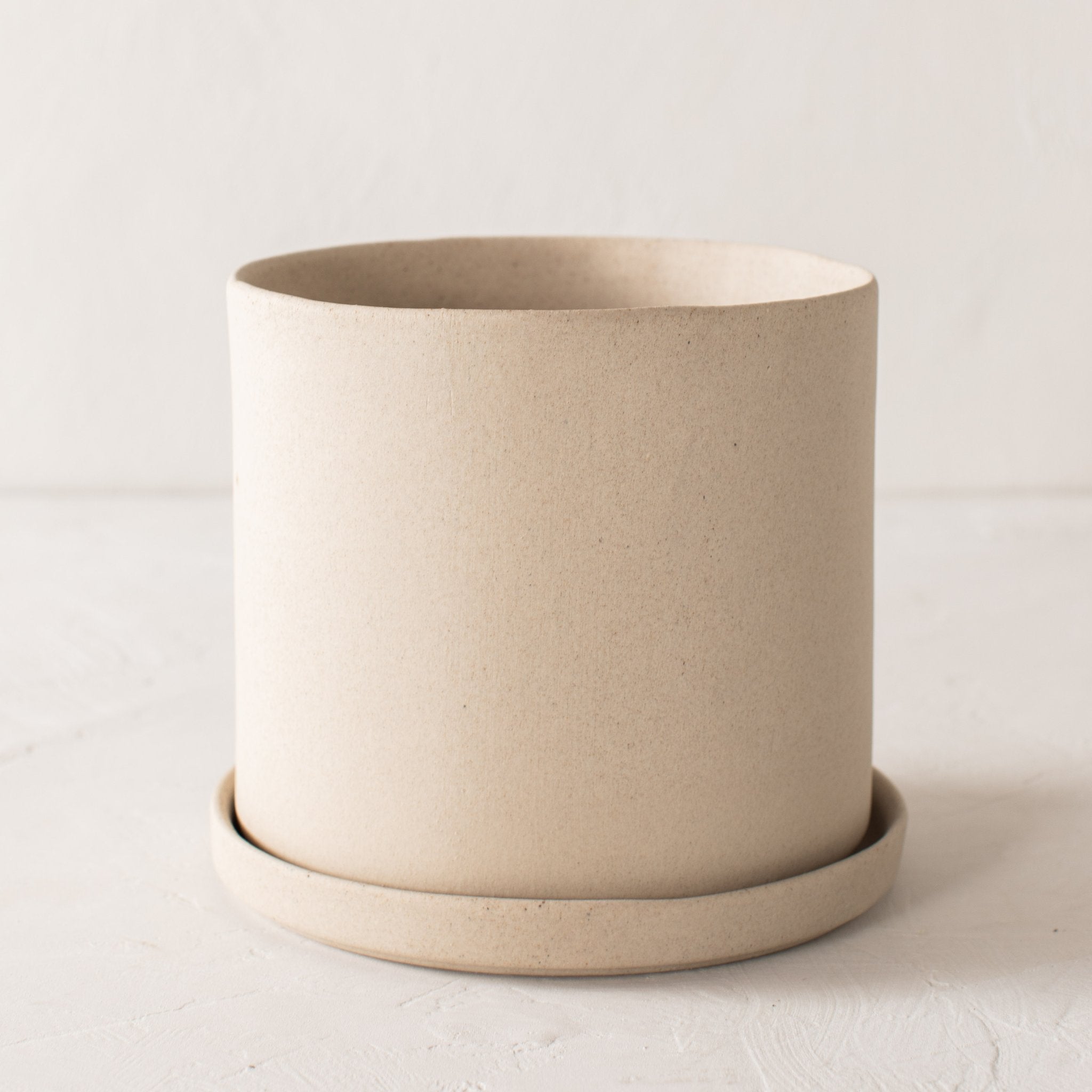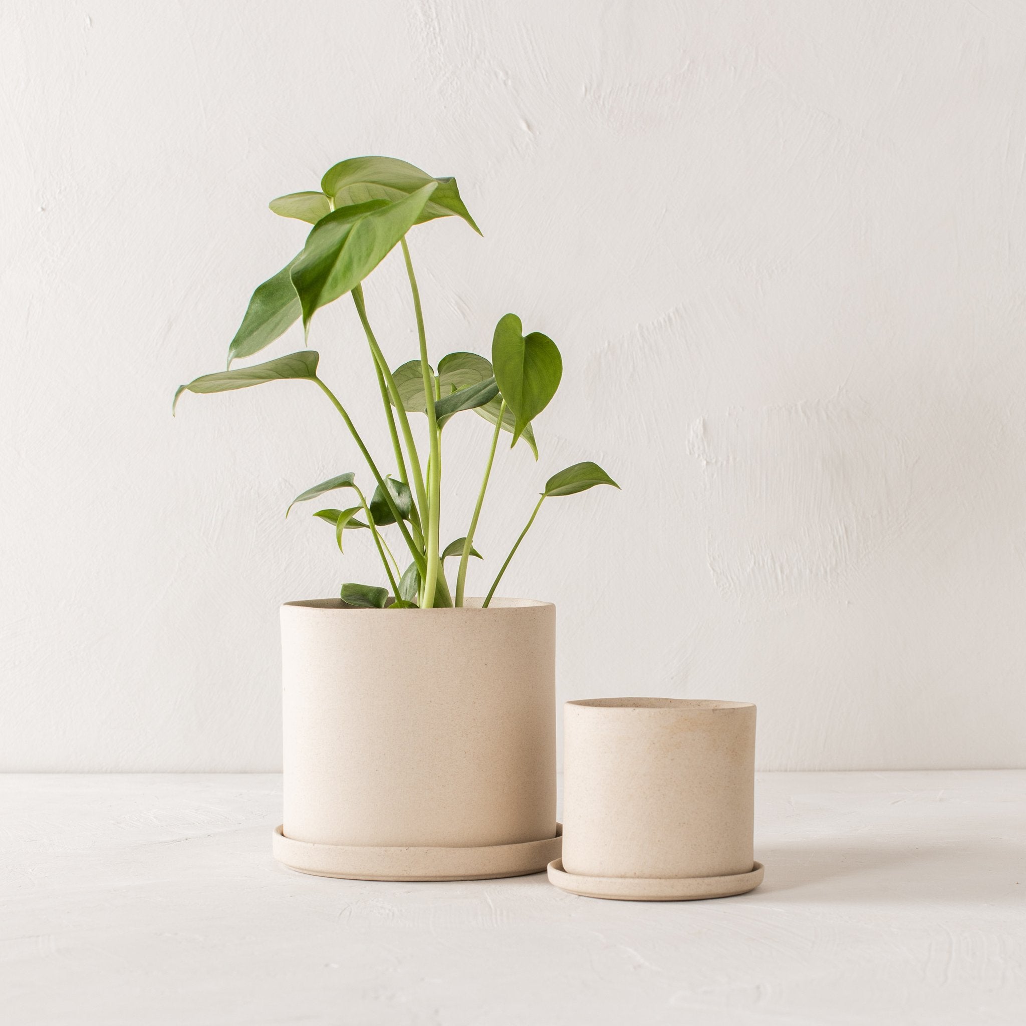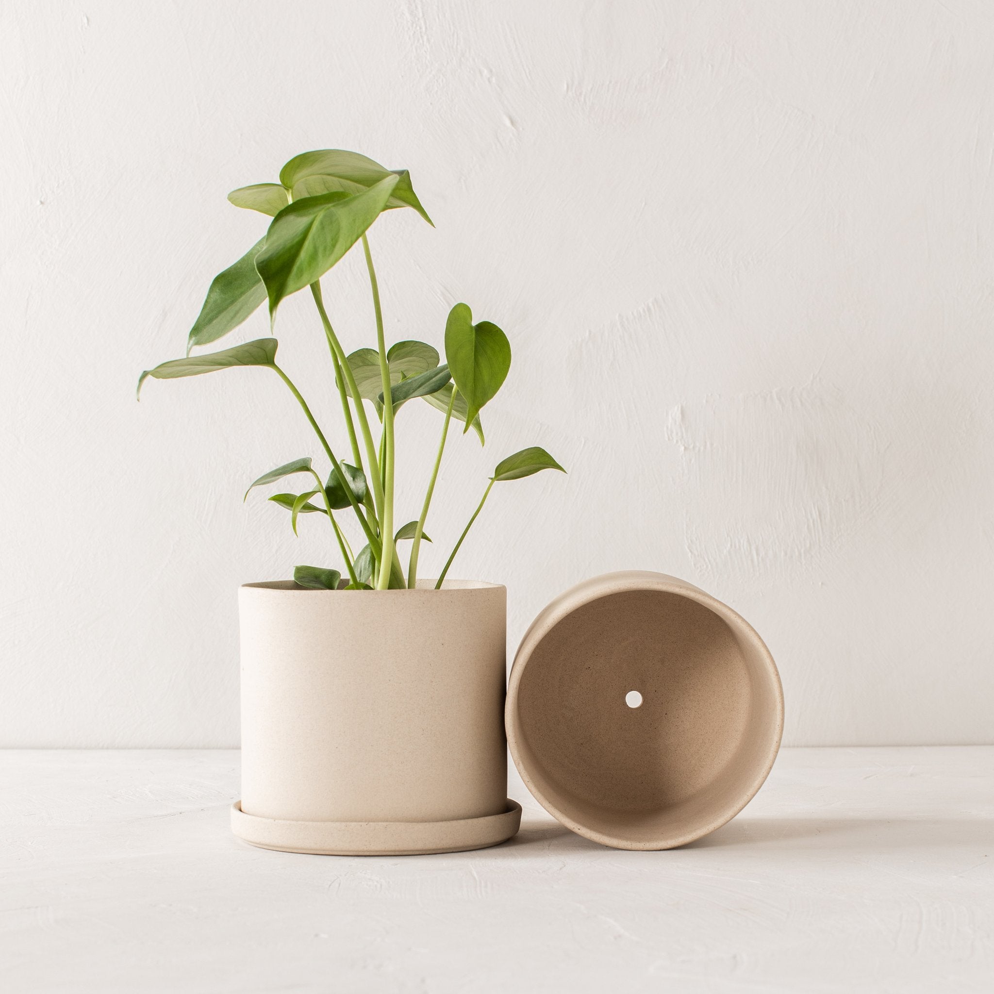 A warm minimalist planter, left unglazed to bring the delicate warm tones of the clay body to life. This design also allows the pot to absorb excess moisture from overwatering.