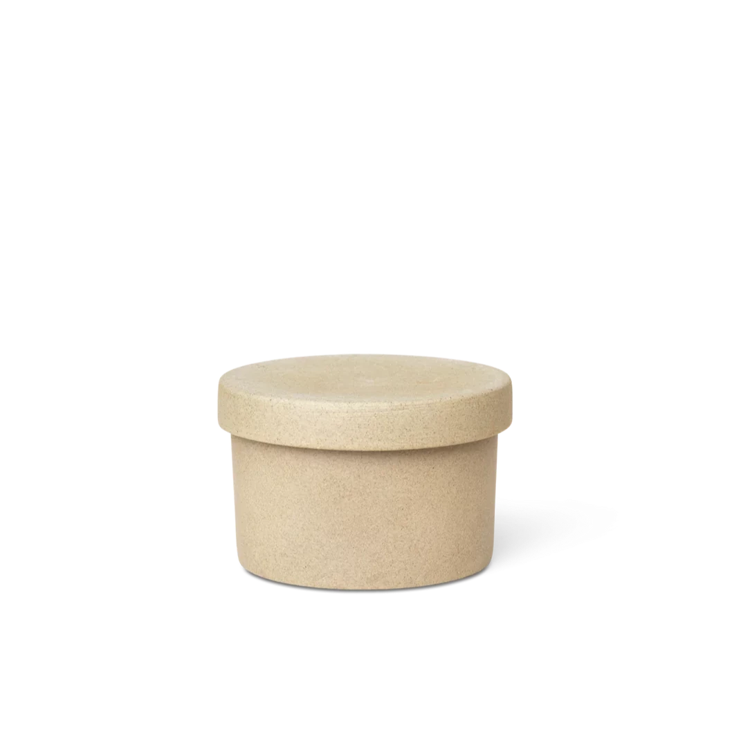 Part of the Bon series of containers inspired by Japanese minimalism, this large cylindrical container has been made from raw, sand-colored porcelain for a natural, tactile feel. It works equally well alone on a dressing table, bathroom shelf or even a desk. Fill it with everything from cotton pads to pencils.