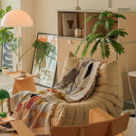 These woven blankets are woven with care in the USA from recycled cotton, making them a sustainable and eco-friendly addition to any home. This lightweight throw is perfect couch cover, bed cover, picnic rug, or wall art