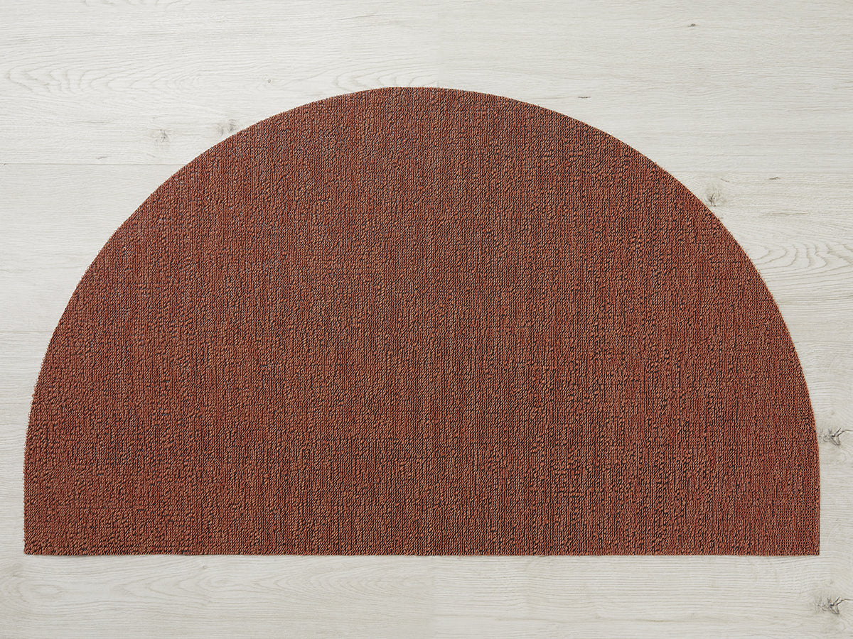 A doormat with an inviting curved shape and beautiful color. With the sturdiness of an all-weather doormat and the plush good looks of a rug, Chilewich's Shag mats bring texture and traction to any space. They are made by tufting their TerraStrand yarns onto a primary backing and then bonding this looped top layer to a sturdy, slip-resistant base of hardworking vinyl, eliminating the need for a rug pad.