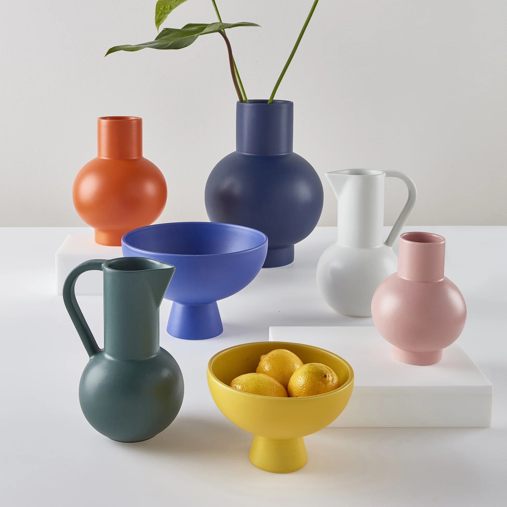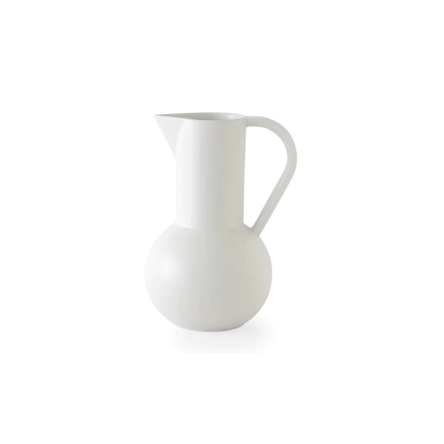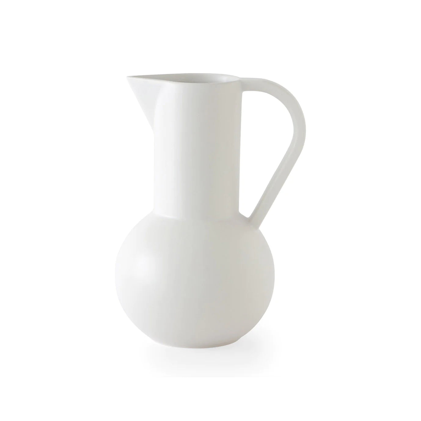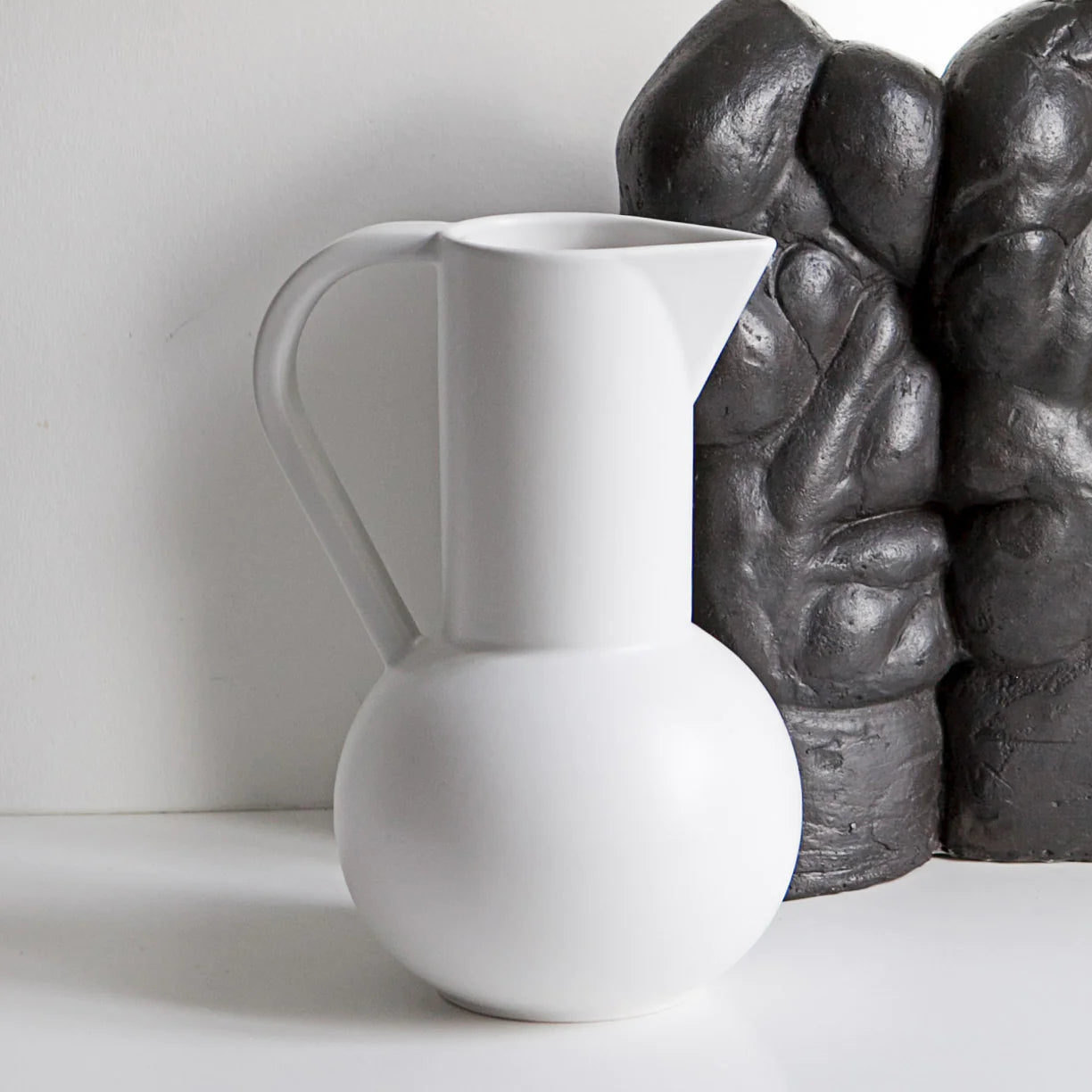 This sculptural ceramic jug is part of the Raawii Strøm Collection by Nicolas Wiig Hansen, a collection of refined geometric shapes and colors translated into functional everyday objects.