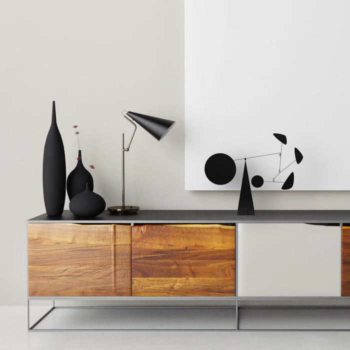 Drawing inspiration from kinetic art, abstraction and organic forms, VOLTA mobiles play with shapes and balance to create timeless decorative objects that capture both movement and repose. In their Spanish workshop, craftsmen carefully shape, paint and balance each mobile, which is presented in an elegant blue and gold leaf box.