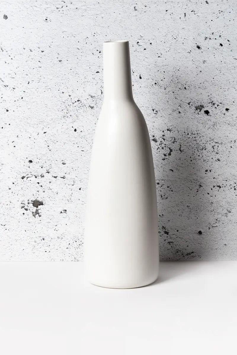 Tall, simple and elegant vase in a matte white finish provides the perfect complement to larger floral and grass arrangements.