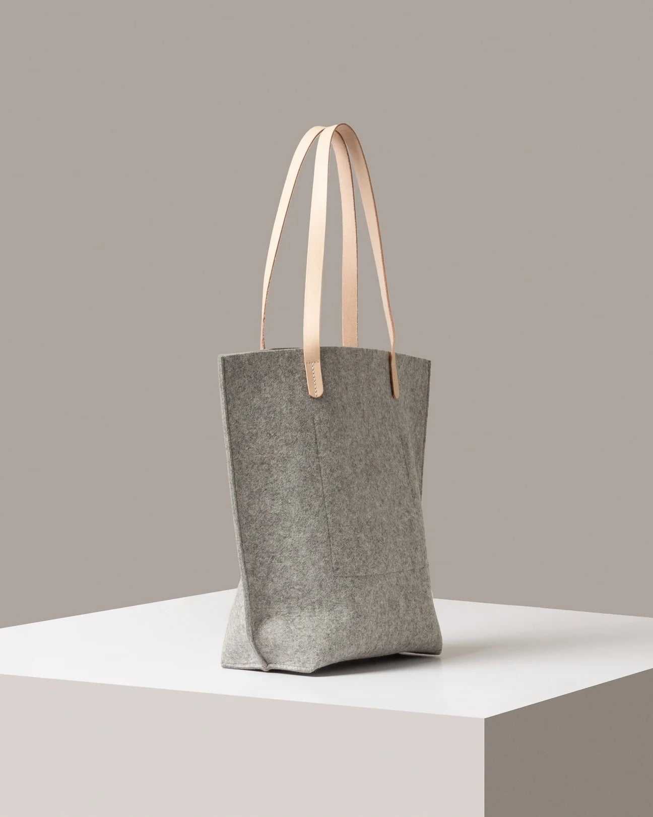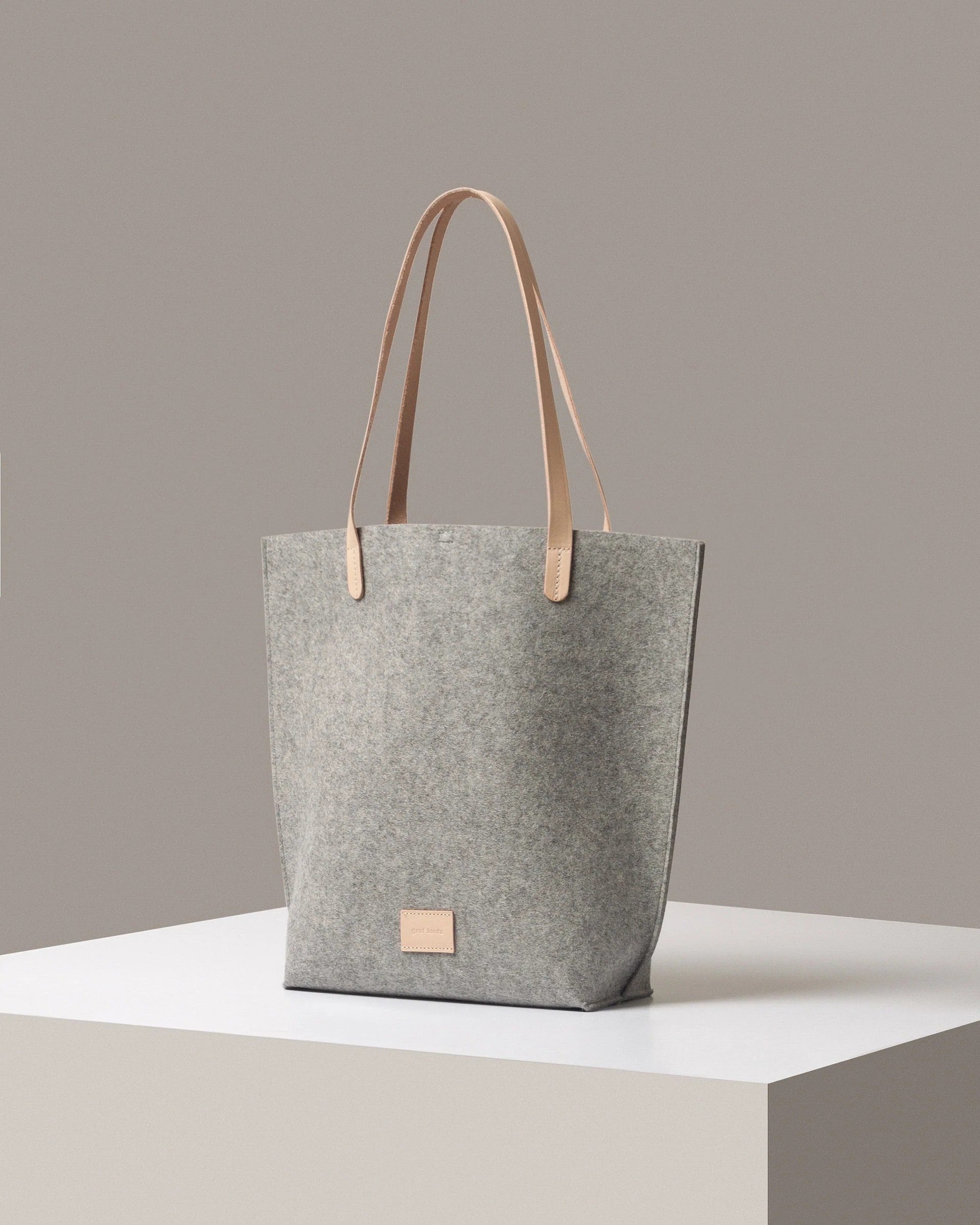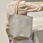 Hana Merino Wool Felt Tote, Granite Felt / Natural Leather