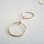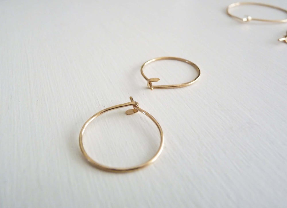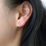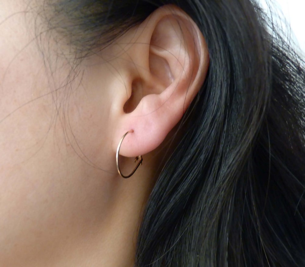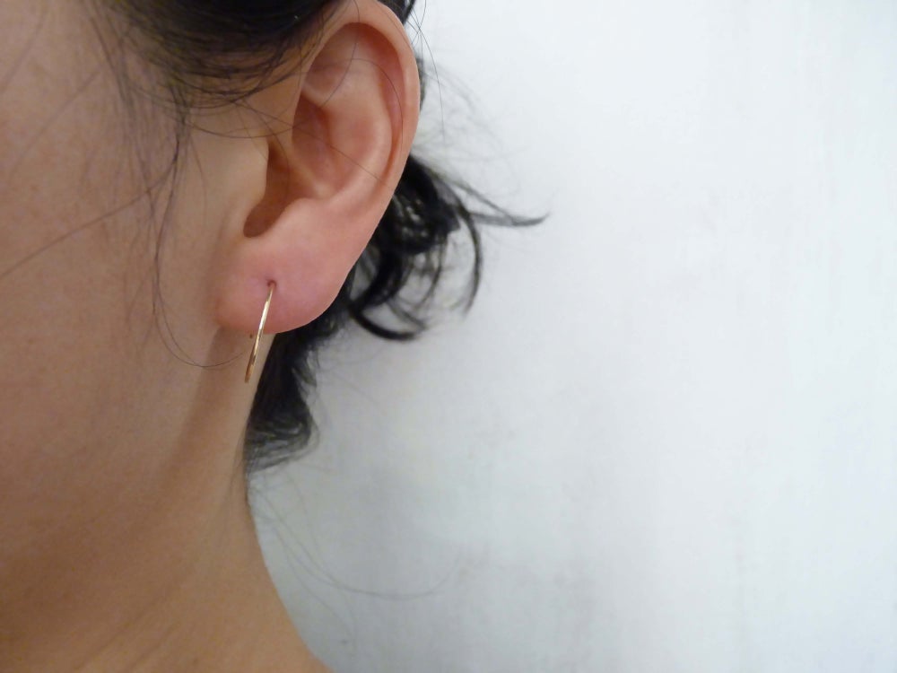 Back to basic but never boring. Small hoops that are cute as a button with the Cinq signature hammered surface. Beauty goes hand in hand with function at the elegant and simple latch closure. Slide the latch behind the ear for a streamlined hoop, or turn the closure forward as a focal point. These will be your beloved chameleon.