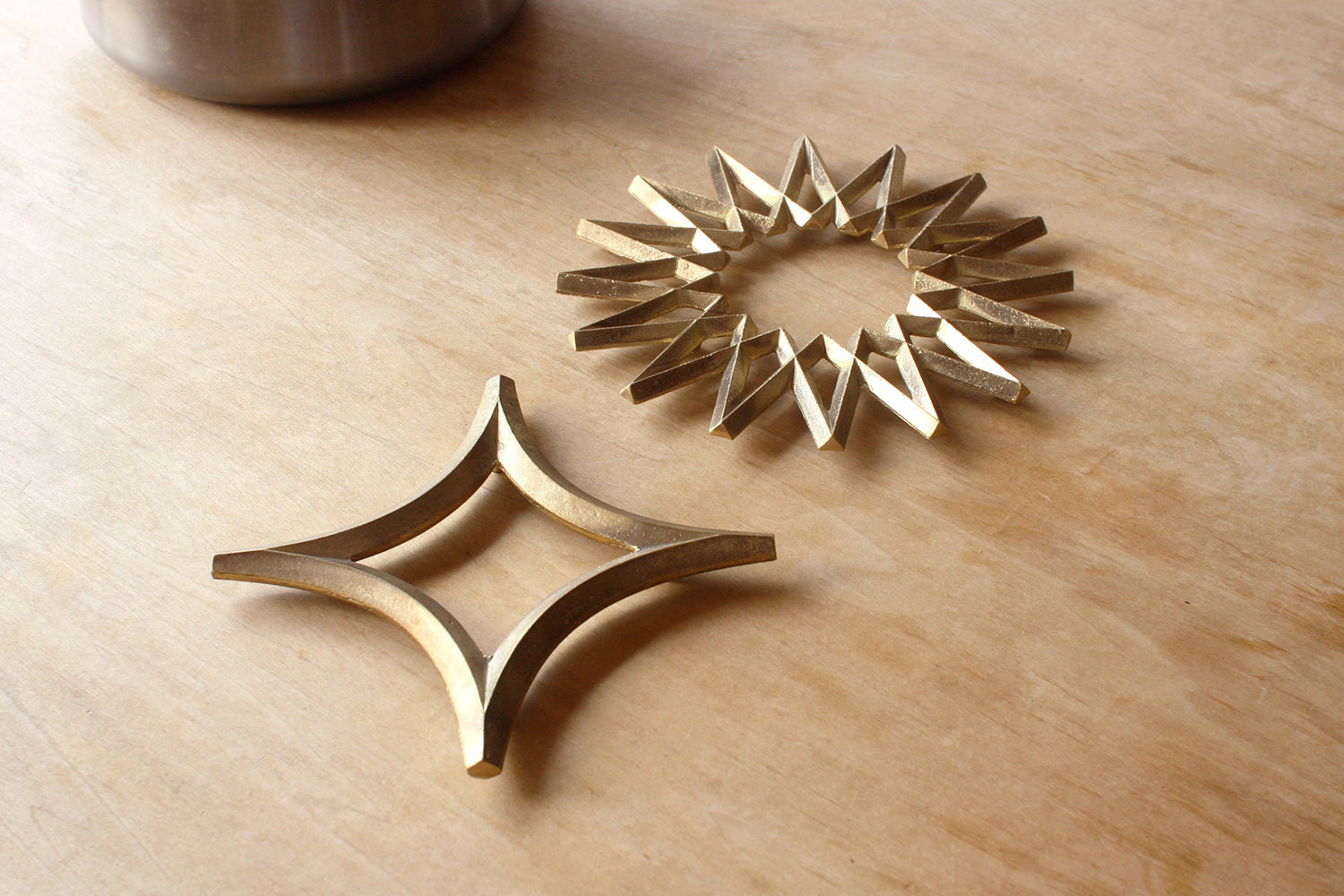 Elegant brass trivet functions as both protection for surfaces in your home and as a design object when not in use. Silicone feet underneath protects from scratches.