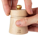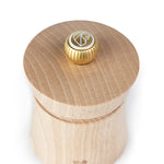 Beauty and simple and practical, the Peugeot Baya salt mill has a petite profile that nevertheless offers a perfect grip. The body of the salt mill is made of beechwood (certified 100% PEFC), and the golden knob located on the head of the mill brings a contemporary touch to the design and also allows you to adjust the grind (slightly loosen the screw to obtain coarser salt).