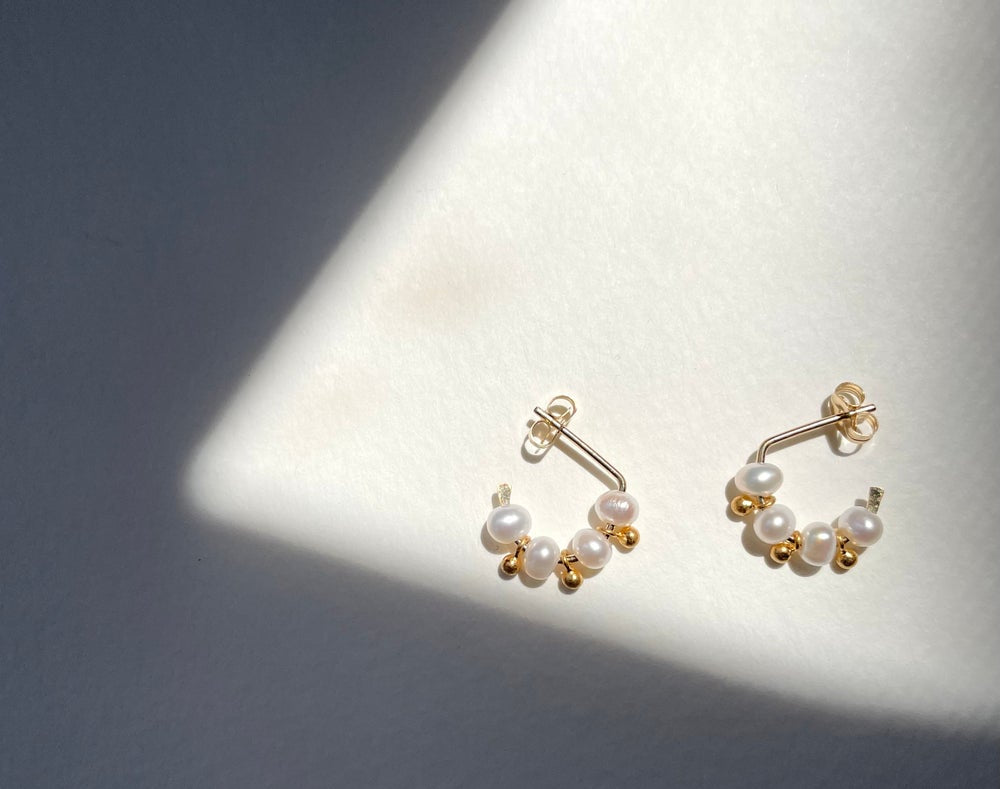 Hand formed 14k gold filled, freshwater pearls, 24k vermeil balls