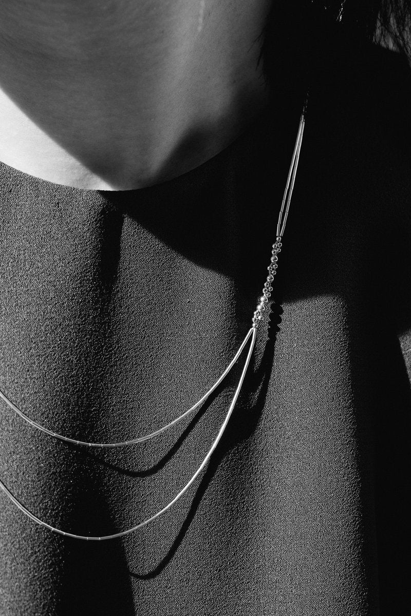 The Zosma is an asymmetrical mid-length necklace.
