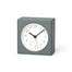 An alarm clock in a muted green, for a restful environment. Has a clean, easy-to-read clock face, in a solid beech wood square body that is beveled for a comfortable finish when held in the hand.