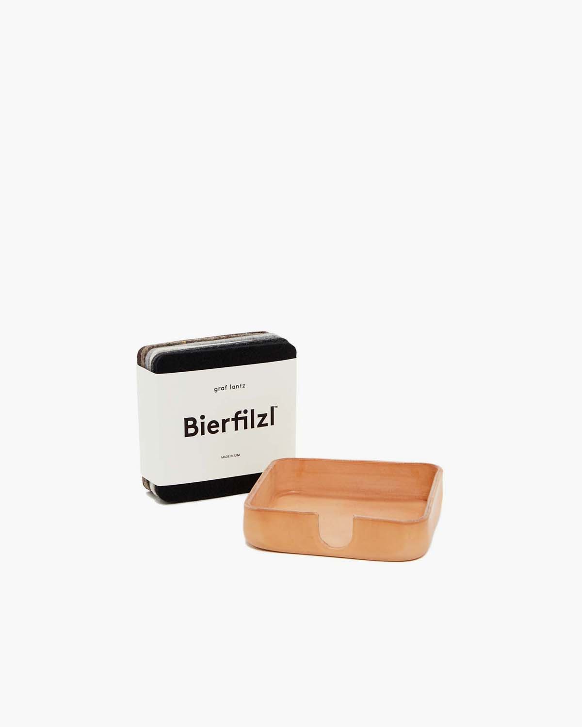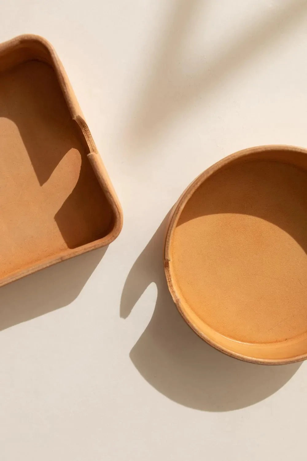 Sculpted vachetta leather creates a timeless catch-all that is perfect for home or office. Designed to fit Graf Lantz's Bierfilzl Coasters and available in round or square shape, this organizational wonder also moonlights as a multi-talented organizer perfect for jewelry, small office supplies, and other diminutive treasures.