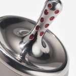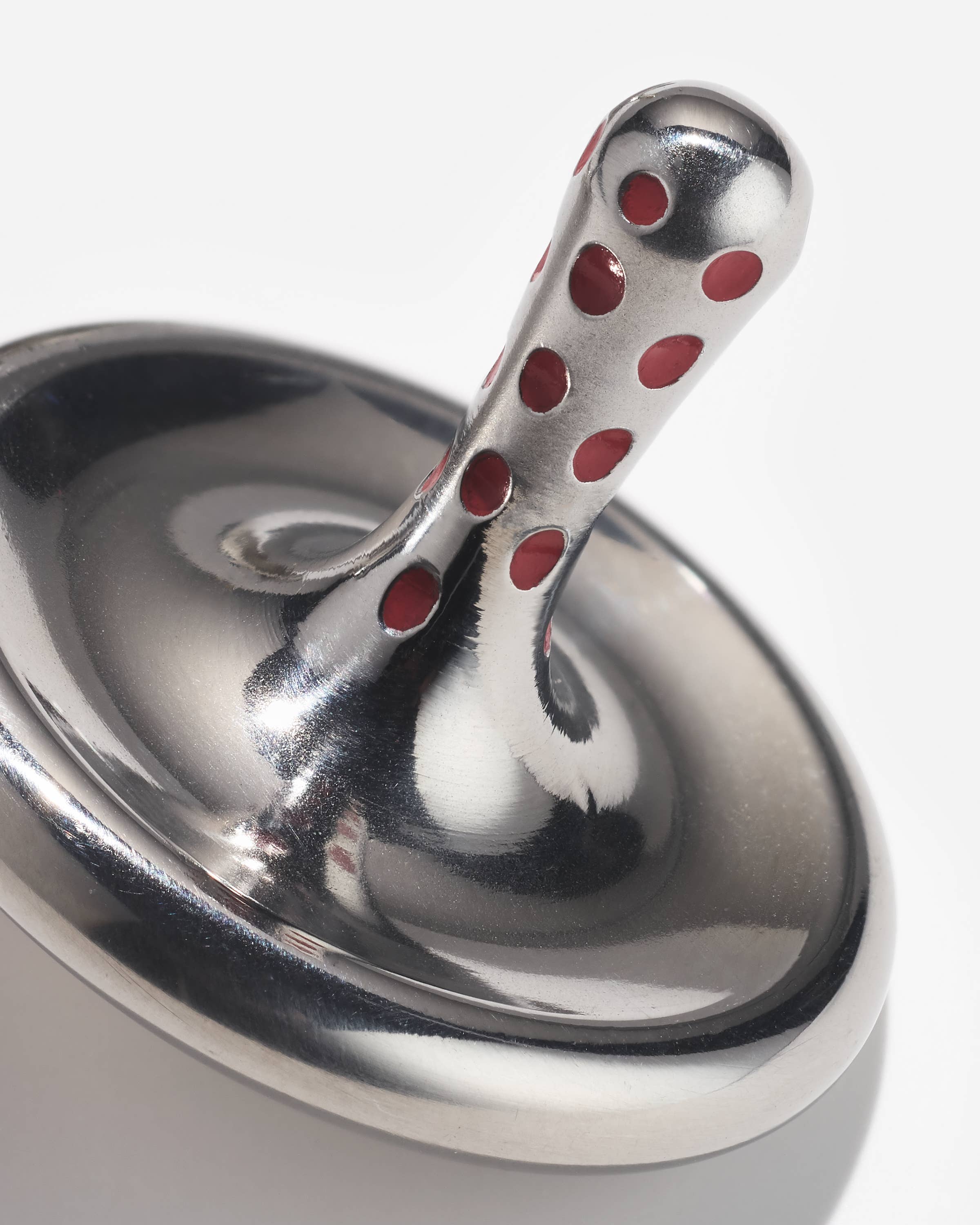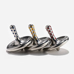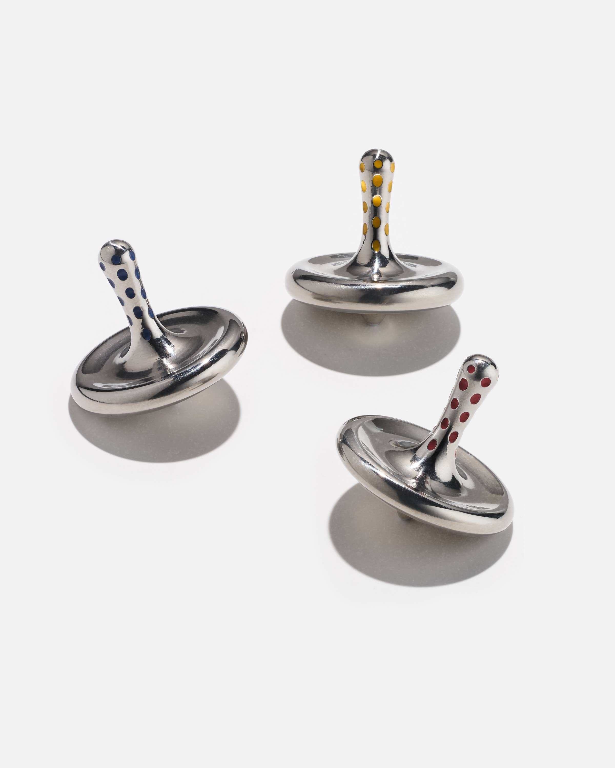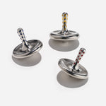 Craighill's elegant take on the classic spinning top. Inspired by a single droplet colliding with a body of water, the Tracer’s design is an evocative rendering of an otherwise impermanent form. But it’s not just nice to look at — it was specifically engineered to defy the forces of friction and gravity for long, satisfying spins. Colored pips provide grip for heightened spin control in the hand, and generate a hypnotic visual effect while in motion.