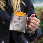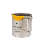 Snow Peak’s Hot Lips Titanium 600 Mug is a single-walled titanium mug that can be placed directly over a heat source for cooking, with silicone 'Hot Lips' that allow you to then drink directly from the mug without burning your lips. Featuring foldable handles and ultralight titanium, the mug is easy to store and carry on all your adventures.