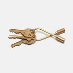 A helix-shaped brass wire with turned end-caps. Simply unscrew the knurled side to add or remove keys.
