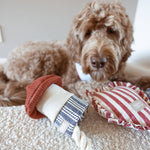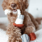 Celebrate with the Rocket Confetti POP toy from Lambwolf Collective! This dog toy combines the fun of burrowing and balls. Hide treats inside to encourage your pup to dig out the pop balls, not only will your pup be rewarded with treats but TWO fun bouncy balls!