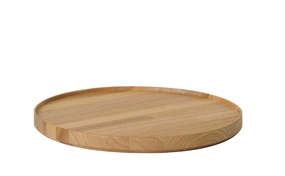 A wood extension of the Hasami Porcelain line, a modular stacking collection of tableware. The wood trays/plates are the same diameter as the bowls, so they may also be used as lids.