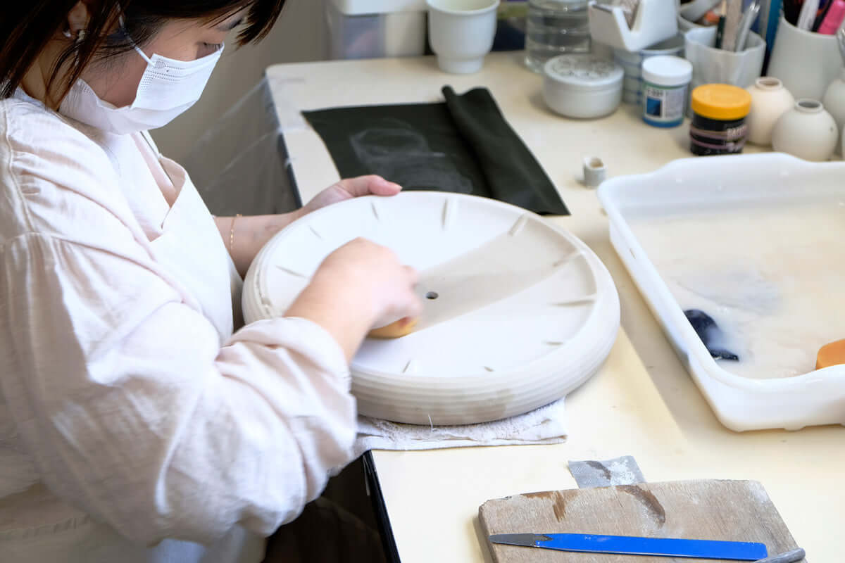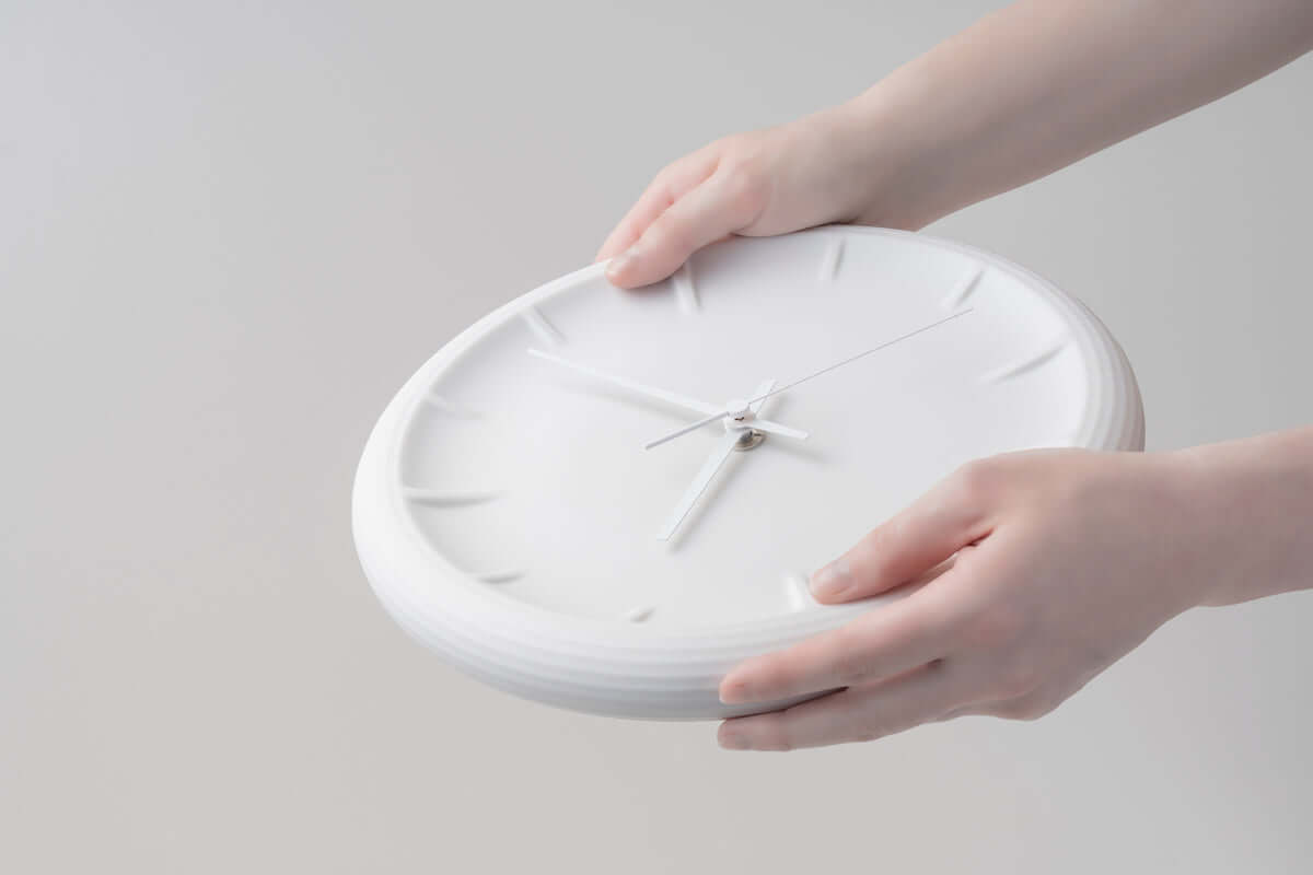 RELIEF for Lemnos is a porcelain clock that takes advantage of the characteristics of the manufacturing method called “gabaikomi”, a special type of casting using a liquid ceramic mixture poured into then out of a mold.