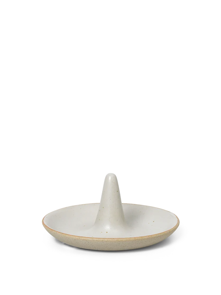 The minimalistic Ring Cone from Ferm Living is made of raw porcelain with a milky colored glaze set off by the exposed contrast rim, which gives it a delicate, modern expression.