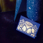 100lb heavyweight card stock. Offset printed and foil stamped.
