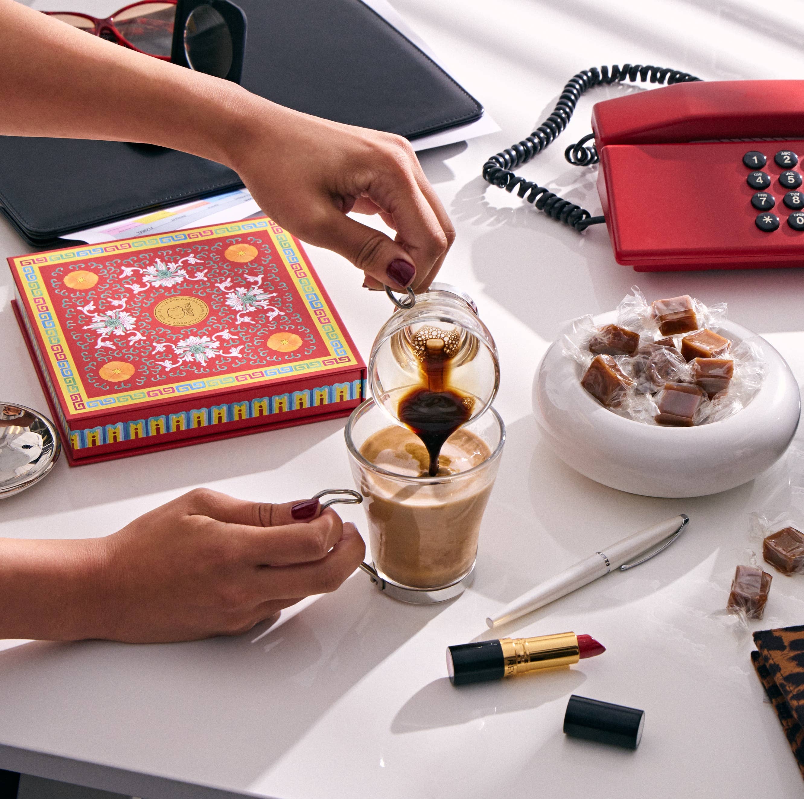 Kick back with caramels featuring a warm blend of sinfully spiced masala chai and rich, smooth espresso. Dirty never tasted so delicious!