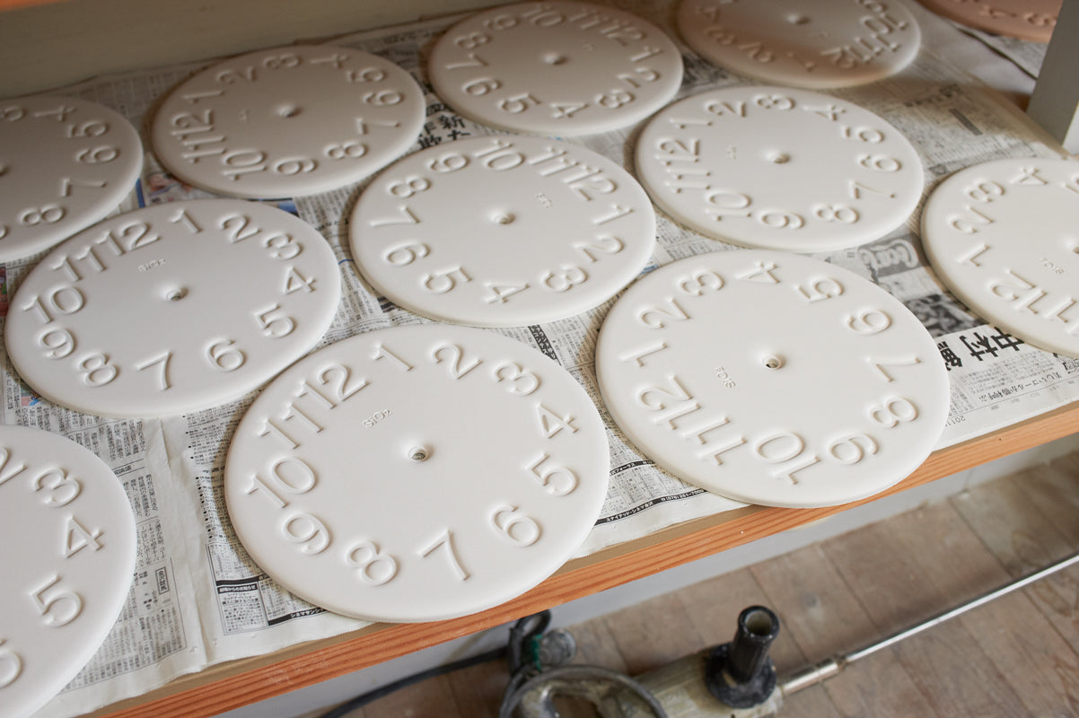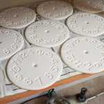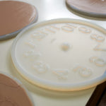 A tactile time piece, the Earth Clock has a smooth, matte surface and rounded edges.   Cast from silicon dioxide (SiO2), also known as diatomaceous earth, this unusual wall clock brings a softness and sense of calm.