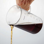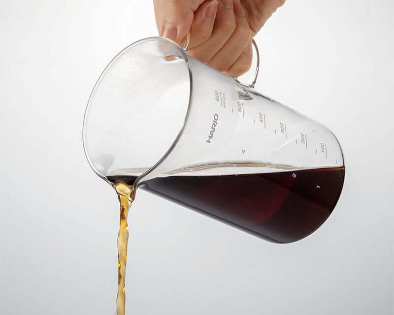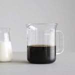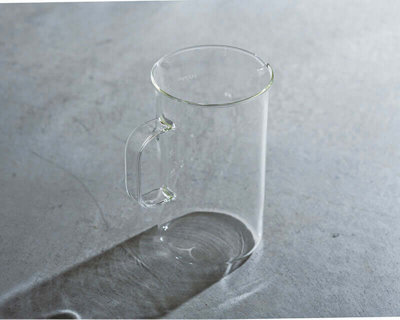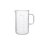 These borosilicate glass beakers are marked with ML measurements for brewing accuracy, and the wide, flat handle is easy to grip for a steady, controlled pour. These beakers are also great as measuring cups.