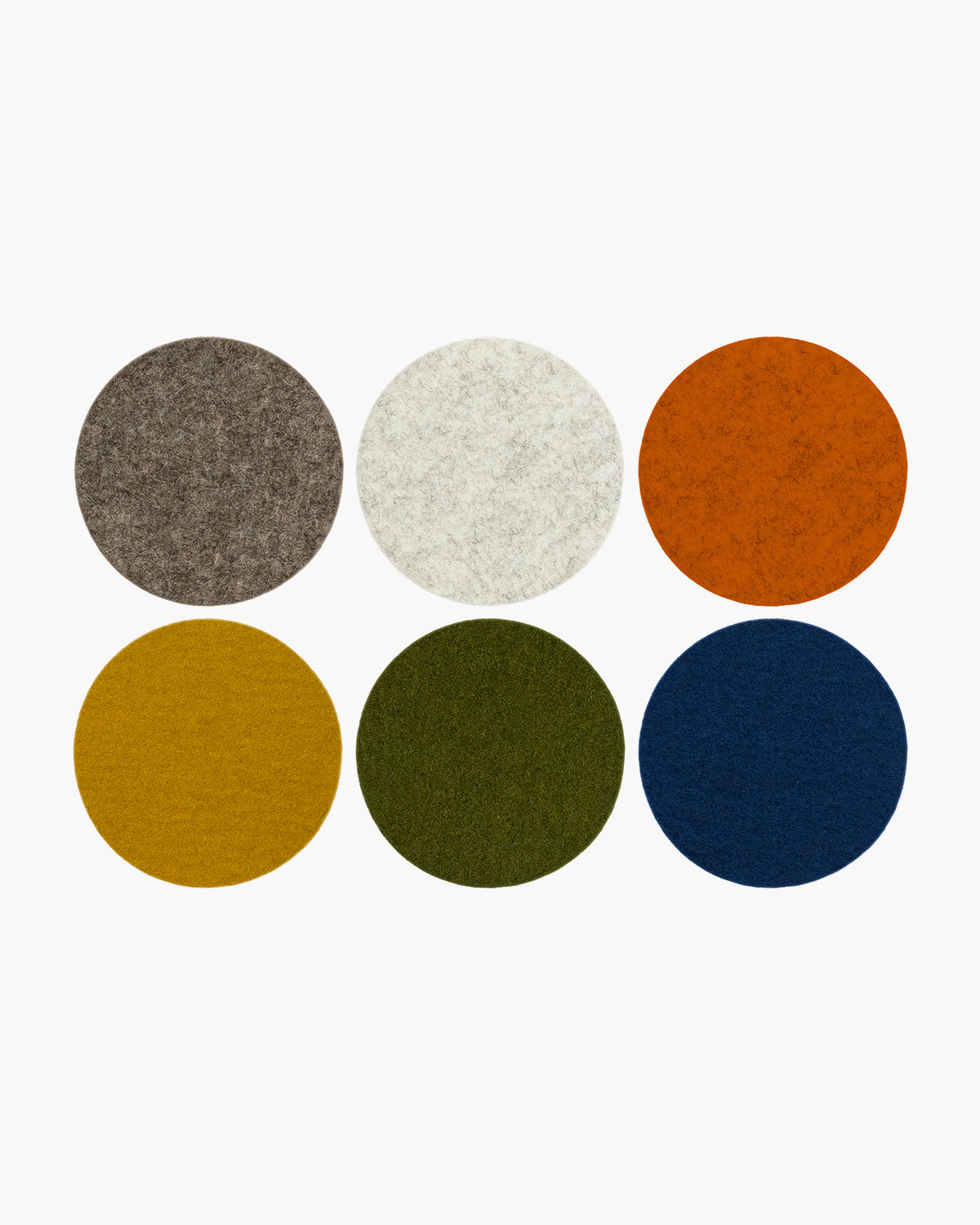 Merino Wool Felt Multi Color Coasters, Set of 6 - Round