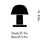 Base: 5.5"Ø; shade: 9"Ø; total 8.8"H. 59" long Micro USB charging cable