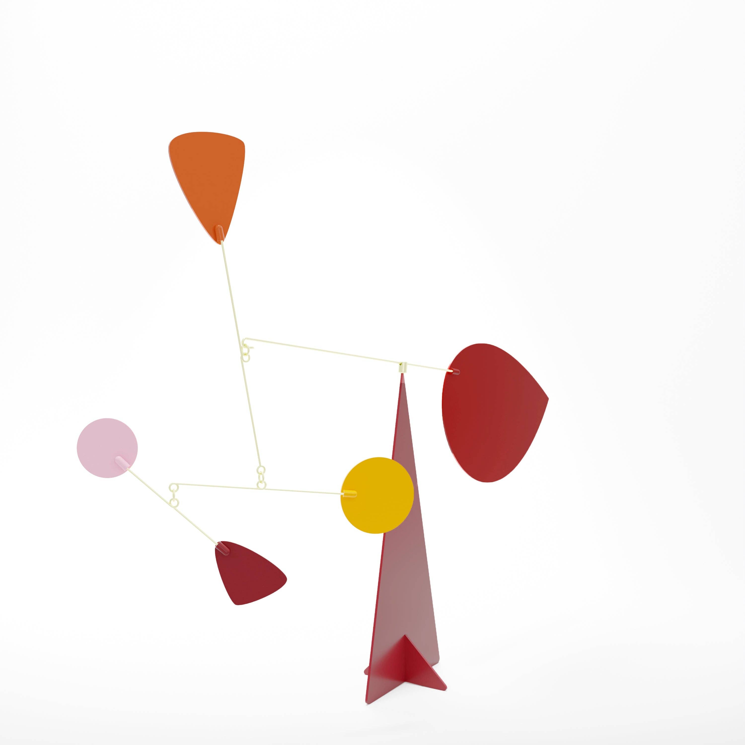 A warm crimson base anchors the composition of the YUKATAN mobile, while complementary warm accents create visual rhythm and depth. The YUKATAN mobile commands attention while maintaining an understated elegance—perfect for spaces seeking sculptural presence without excess.